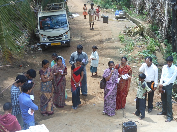 Village outreach programmes are conducted once in a month with adequate preparation of praying for a particular village and then setting out to the village taking Gospel literature and tracts with us. In the village outreach work, we go out and meet people, and conduct open-air Gospel services with hymn singing and the sharing of our testimonies. We pray for the needs of the people and counsel them on a one-to-one basis. Through this ministry many people have come to know the love of the Lord Jesus Christ.